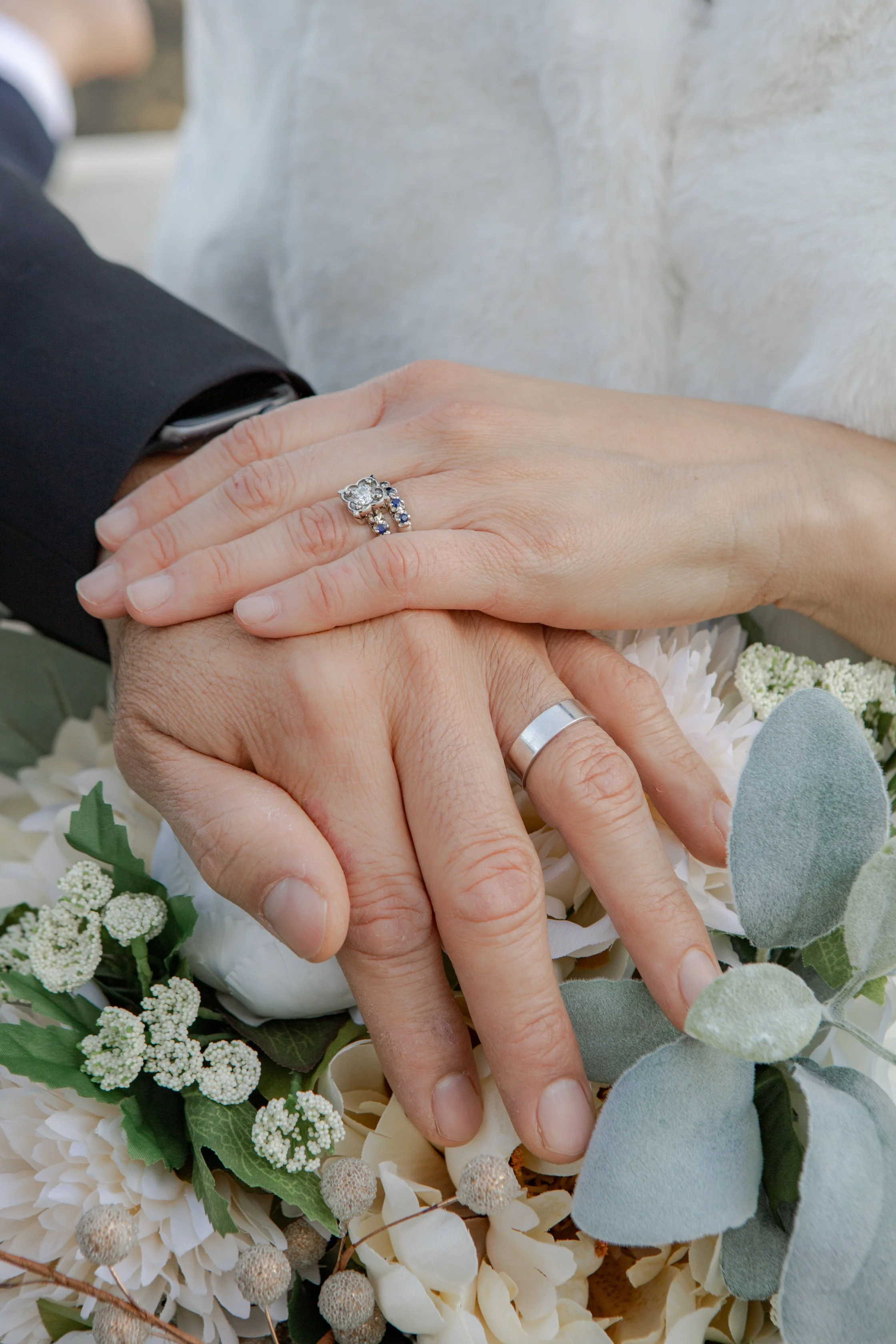 When we arrive the first thing we'll photograph though are your personal details. It saves so much time to have everything in one place This includes your invitation suite (a couple copies are helpful), all rings, florals, dress, veil, shoes, suit, cuff links, heirloom jewelry, getting ready robes, wedding party gifts etc. This is a great thing to delegate to a bridesmaid, groomsman, or family member.